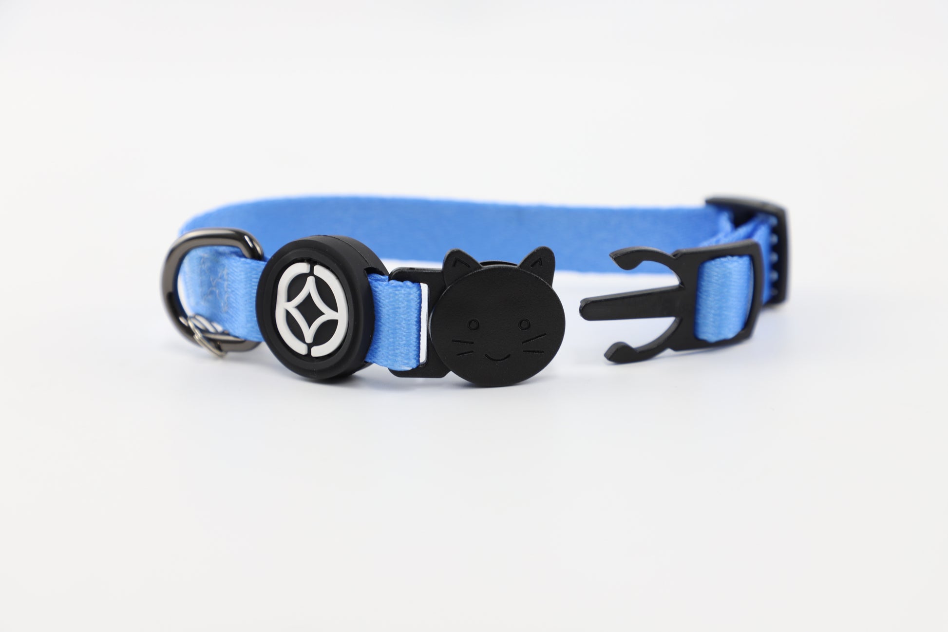 Meet the “Blue Skies Kollar” – a soft, adjustable solid blue collar with sleek black hardware, a safety breakaway clasp, and a playful jingle bell. Designed with a cute cat-face buckle and our signature center Kat Kollars emblem, this collar keeps your kitty stylish, safe, and easy to spot around the house.